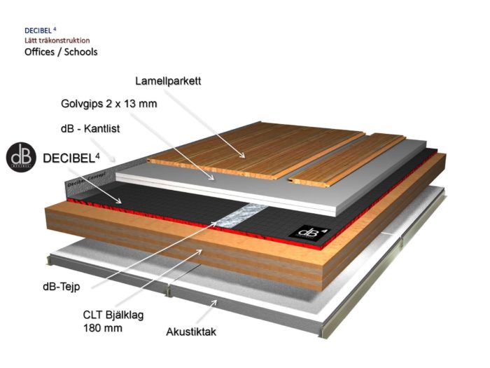 Ett företag som engagerat sig i denna fråga och som samarbetar med tillverkare av CLT är Aprobo AB som nyligen presenterat en omfattande studie med deras Decibel Concept, där ett 40-tal fullskaliga testobjekt med CLT utvärderats i labb kombinerat med en mängd fältmätningar.
