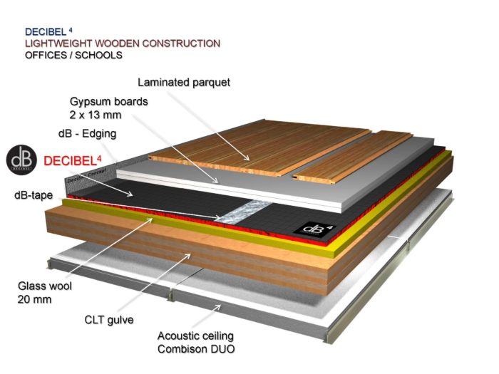 Decibel Concept has been able to offer effective acoustic solutions regardless of whether it was concrete or wooden beams, but we are constantly looking for new challenges and here we address our latest development in light wooden beams with a focus on CLT (cross laminated timber) also called KL-Trä, KLT , X-Lam, BSP etc. We have also participated in new innovative constructions such as MiTek’s Posi Flooring System which you will find on pages 17-19 of the brochure under “related files”.