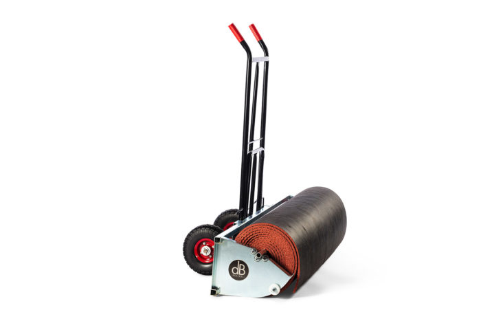 Vi har tagit fram en produkt som vi kallar för dB Vagn för att underlätta hanteringen av våra tunga Decibel akustikmattor när de levereras ihoprullade.