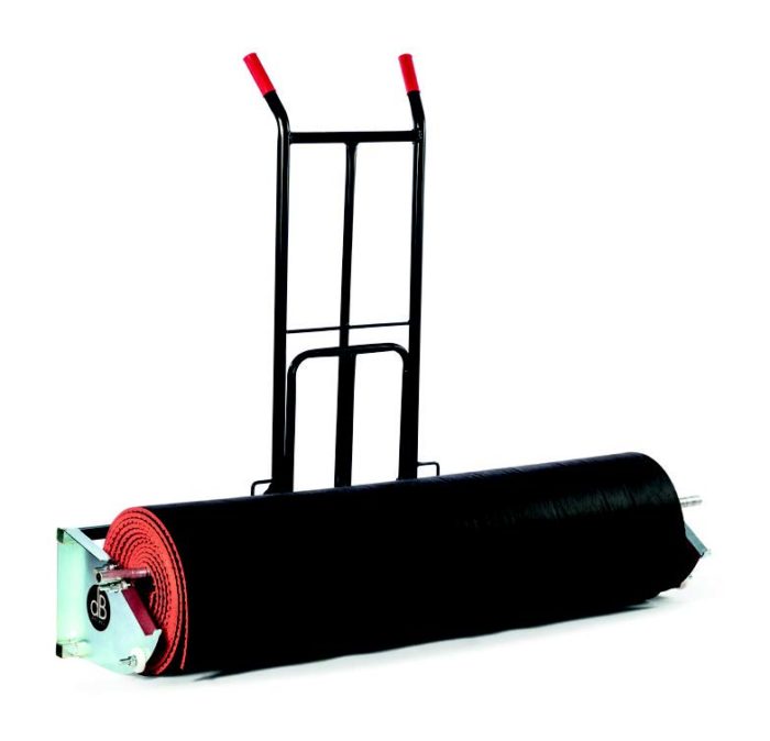 Vi har tagit fram en dB Vagn för att underlätta hanteringen av våra tunga Decibel akustikmattor när de levereras ihoprullade. Med denna kan man enkelt transportera och lägga ut de ihoprullade mattorna ensam, utan att behöva lyfta på rullarna. En stång förs igenom rullen som ska transporteras eller läggas, sedan hängs rullen enkelt på själva vagnens fäste.